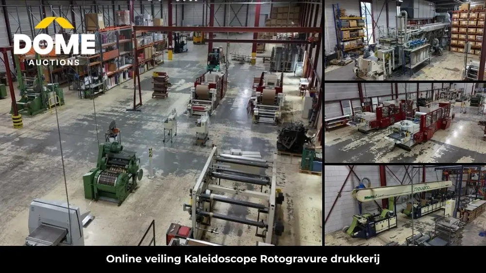 Online veiling van een complete rotogravure drukkerij in Almelo. Inclusief druk- en verpakkingsmachines, papier- en cilinderpartijen en bedrijfsinventaris. Bieden van 3 t/m 31 maart 2026. Kijkdag op 27 maart.
